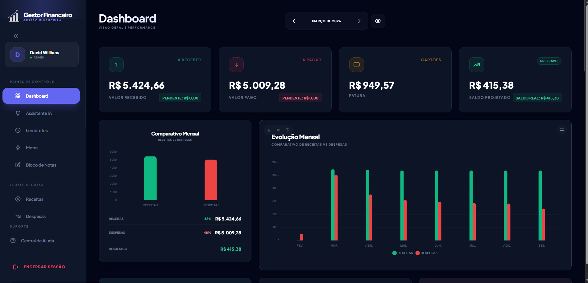 Novo gestor financeiro pessoal: controle simples, rápido e eficiente das suas finanças. Organize gastos, acompanhe receitas e tome decisões mais inteligentes com seu dinheiro — tudo em um só lugar.